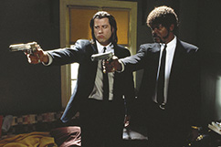 早朝のロサンゼルス。2人組のギャング、白人のヴィンセント(ジョン・トラボルタ)と黒人のジュールス(サミュエル・L・ジャクソン)が、ボスのウォレス(ヴィング・レイムス)の命を受け、取引先のチンピラたちのアパートを訪れる。チンピラたちが室内に隠しているスーツケースを持ち帰る簡単な仕事だった。だが、2人のギャングがそれで済ませるはずもなく、ジュールスはチンピラたちに長い説教をかました後、彼らを蜂の巣にするが―。©1994 Miramax, LLC. All Rights Reserved.